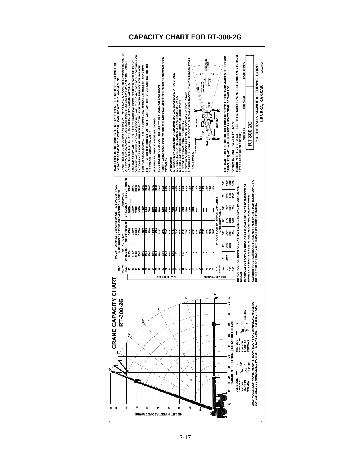 Broderson RT-300-2G - CRANE CAPACITY CHART (Imperial); RT-300-2 G LOAD RATINGS (IMPERIAL)