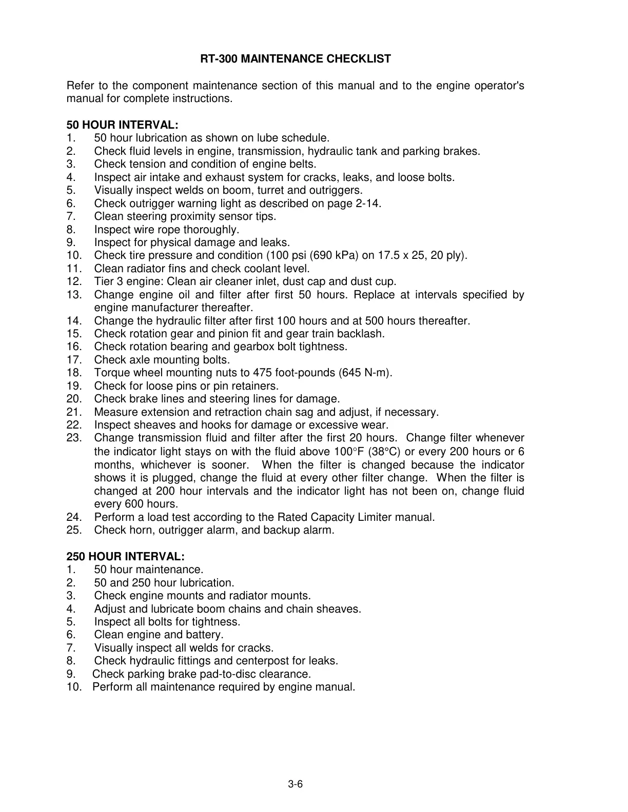 RT-300 MAINTENANCE CHECKLIST