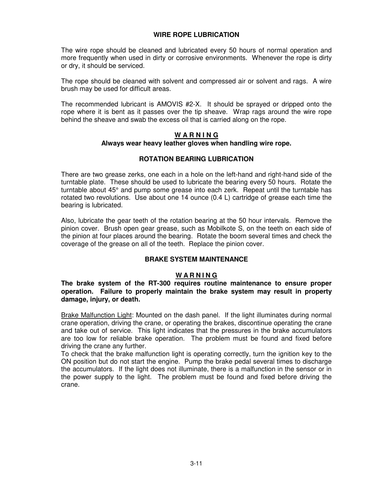 The brake system of the RT-300 requires routine maintenance to ensure proper