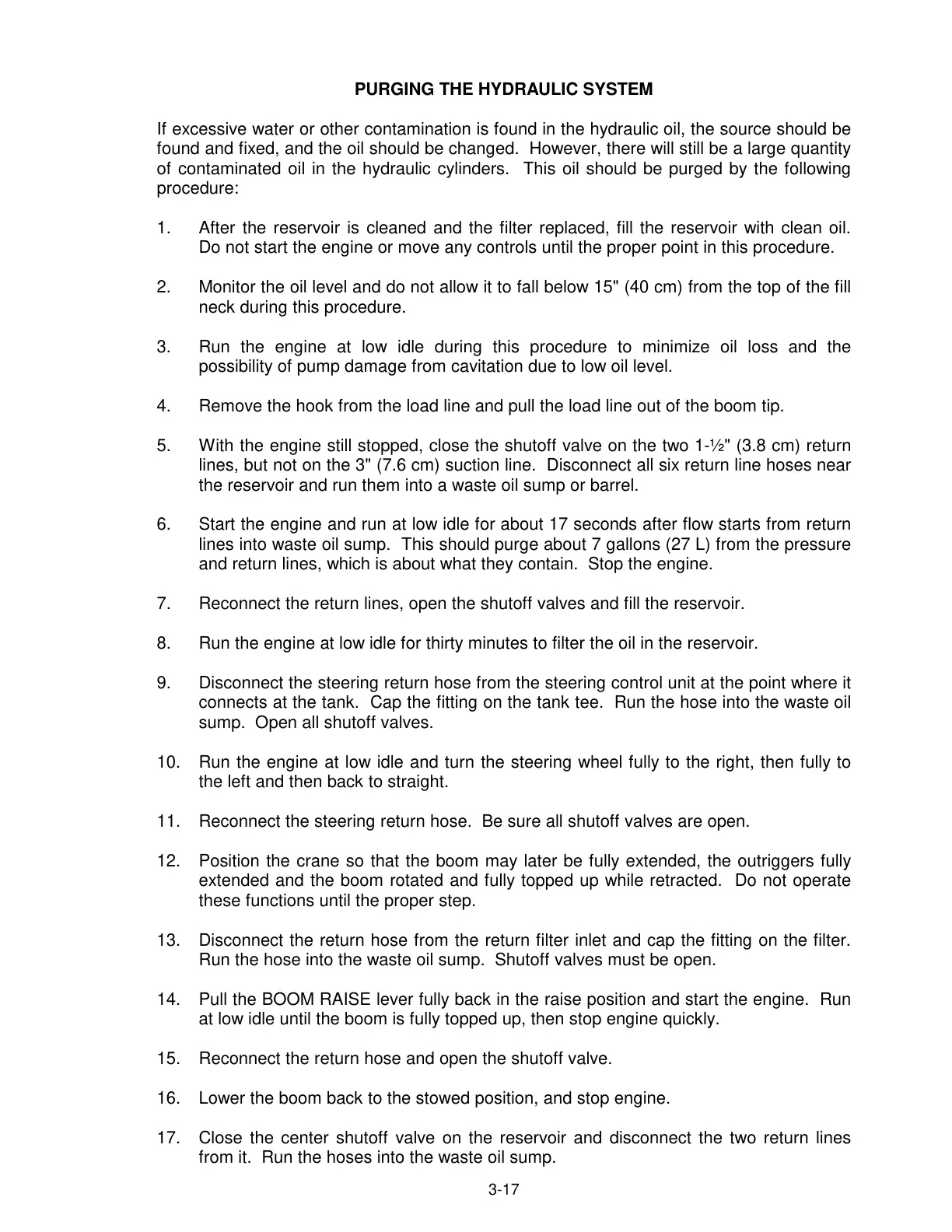 of contaminated oil in the hydraulic cylinders. This oil should be purged by the following