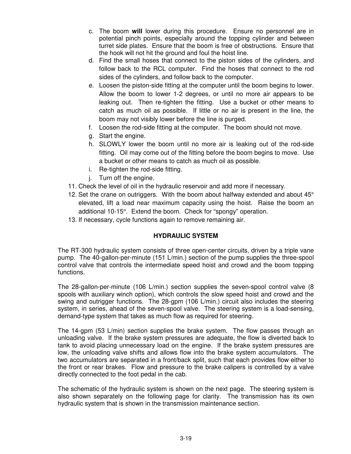 swing and outrigger functions. The 28-gpm (106 L/min.) circuit also includes the steering