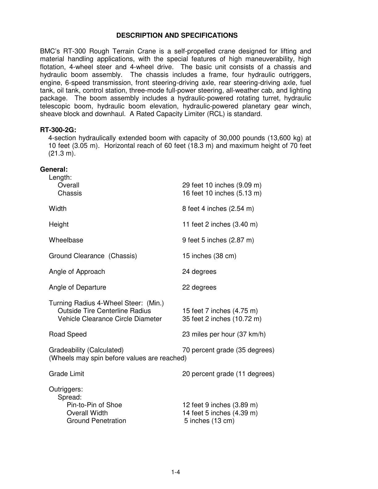 4-section hydraulically extended boom with capacity of 30,000 pounds (13,600 kg) at