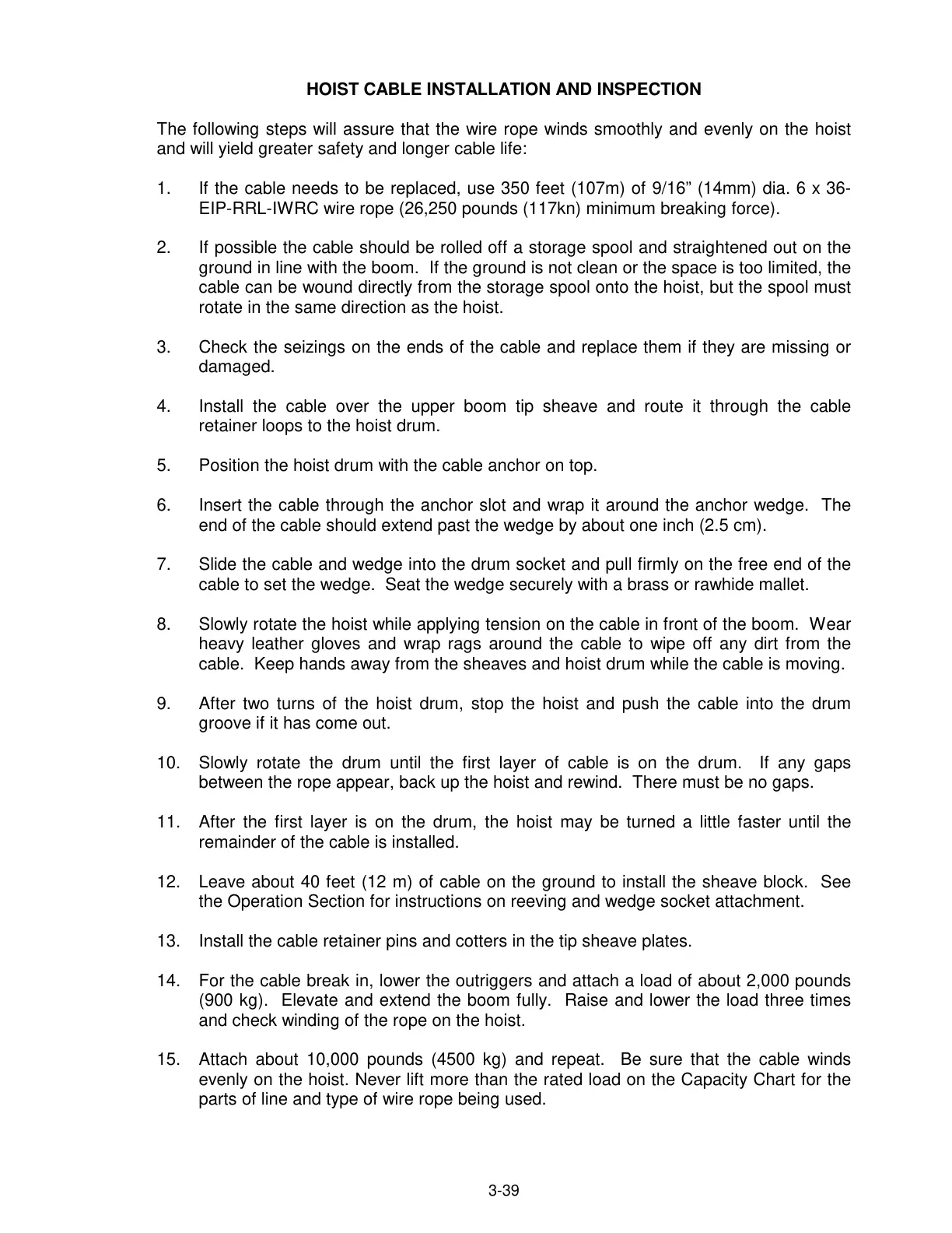 14. For the cable break in, lower the outriggers and attach a load of about 2,000 pounds