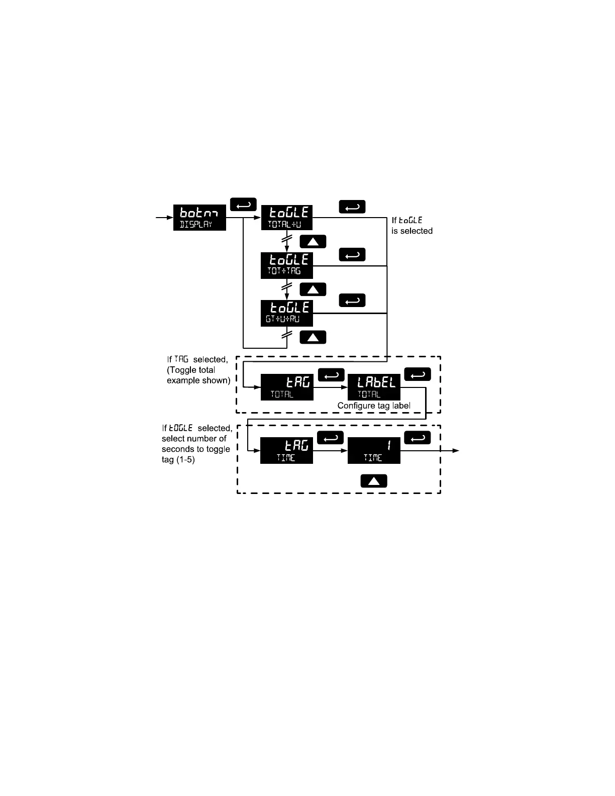 If the bottom display is programmed to toggle (TOGLE), the meter will prompt for a toggle time. In