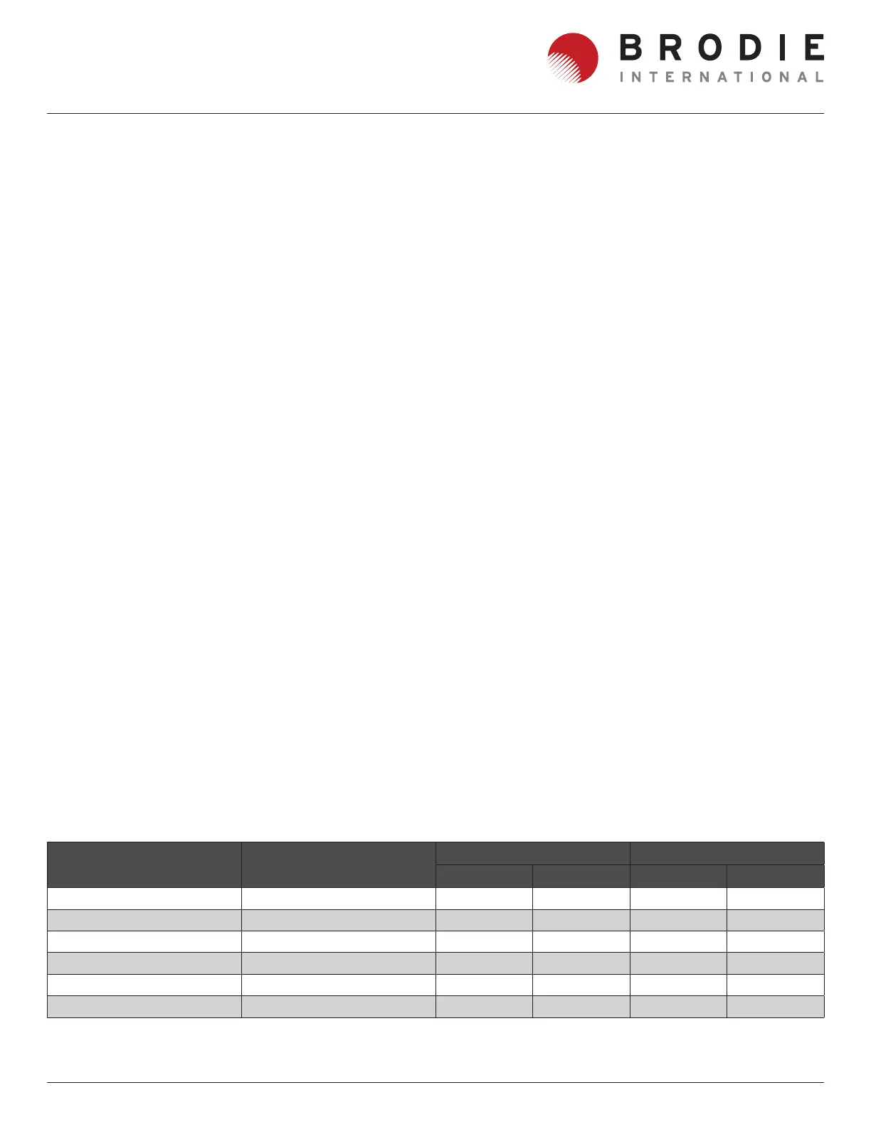 Table 1: Operating Temperature Limits
