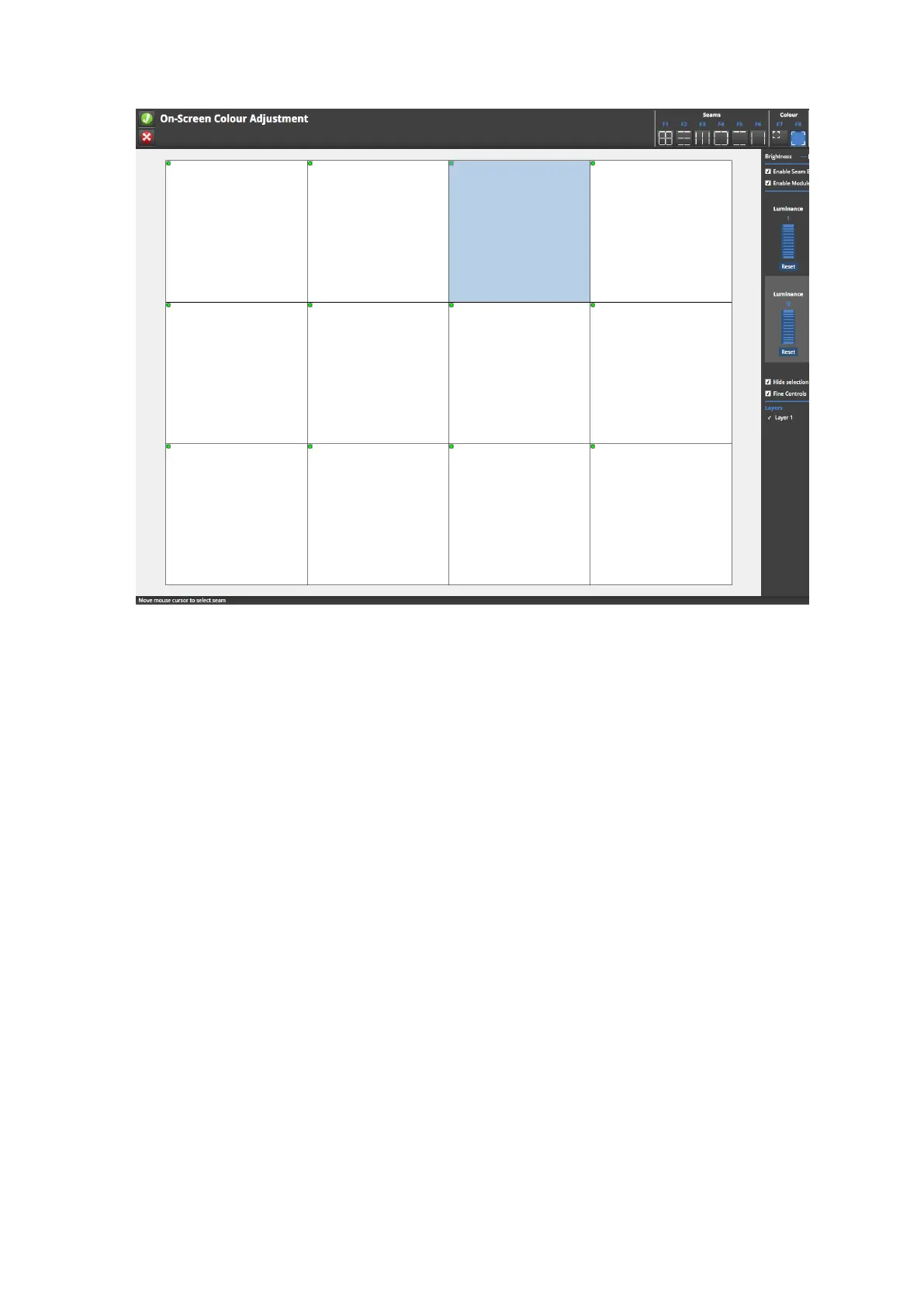 Figure 11-16. The canvas in fixture selection mode for Colour Adjustment