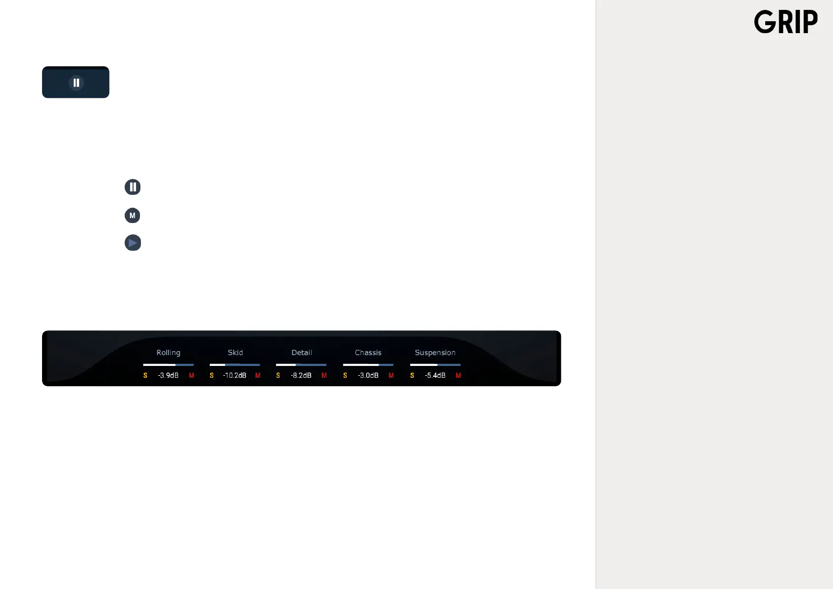 vated (a Pause sign is showing). When the DAW is set to play GRIP will play no matter what, and a Play symbol will