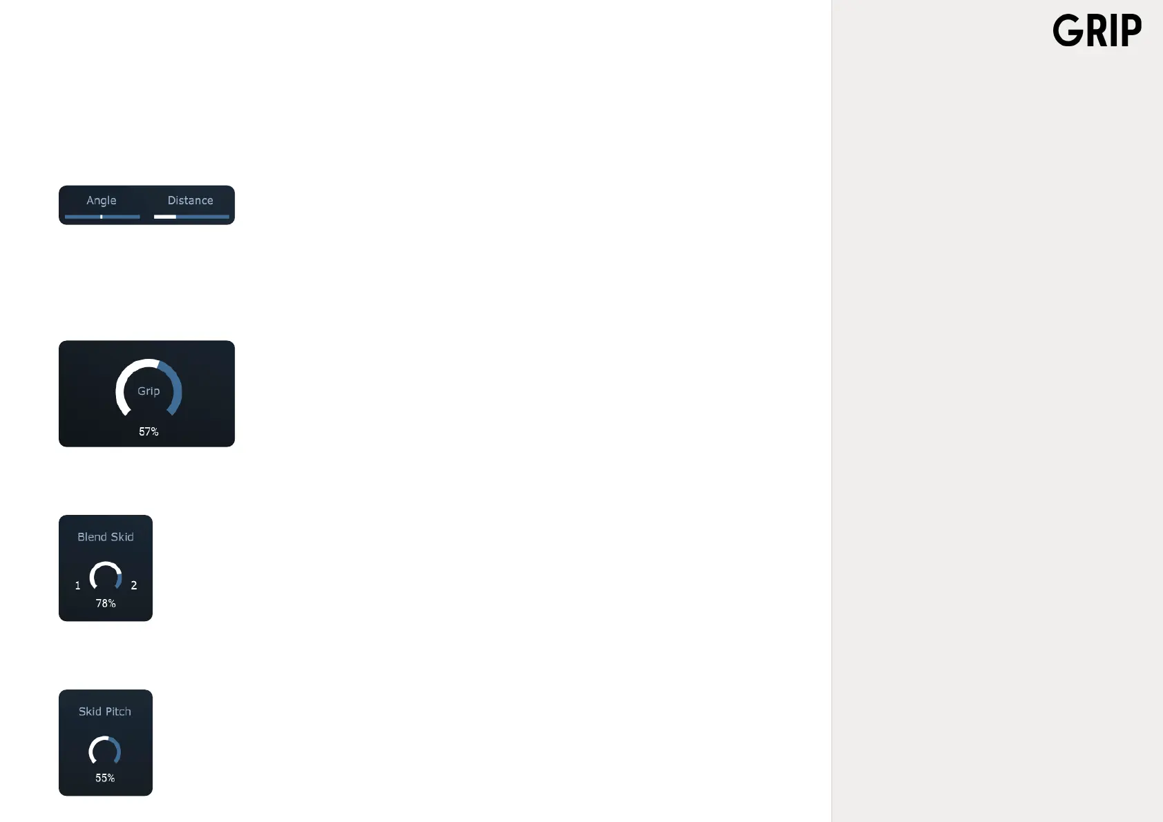 traction, or grip, the surface the vehicle has with the current surfaces. When Grip is set to 100%, the
