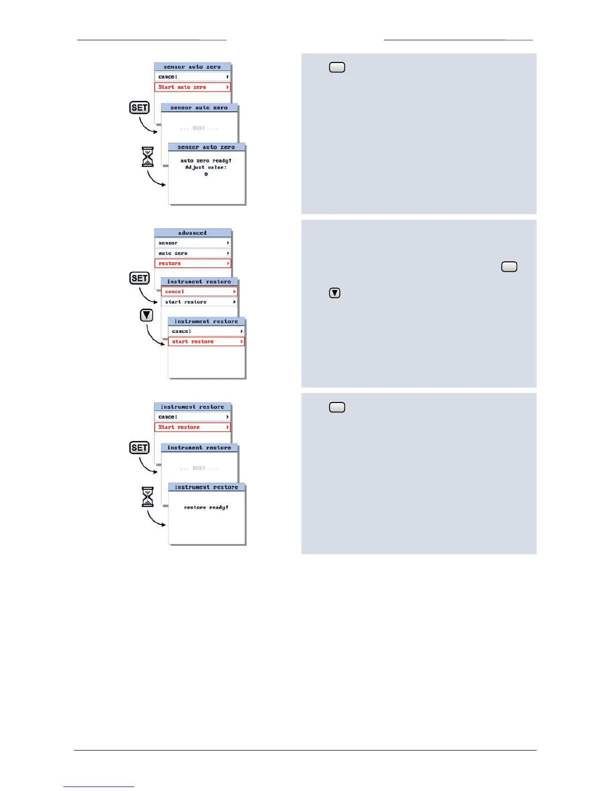 Press to start the instrument restore procedure.