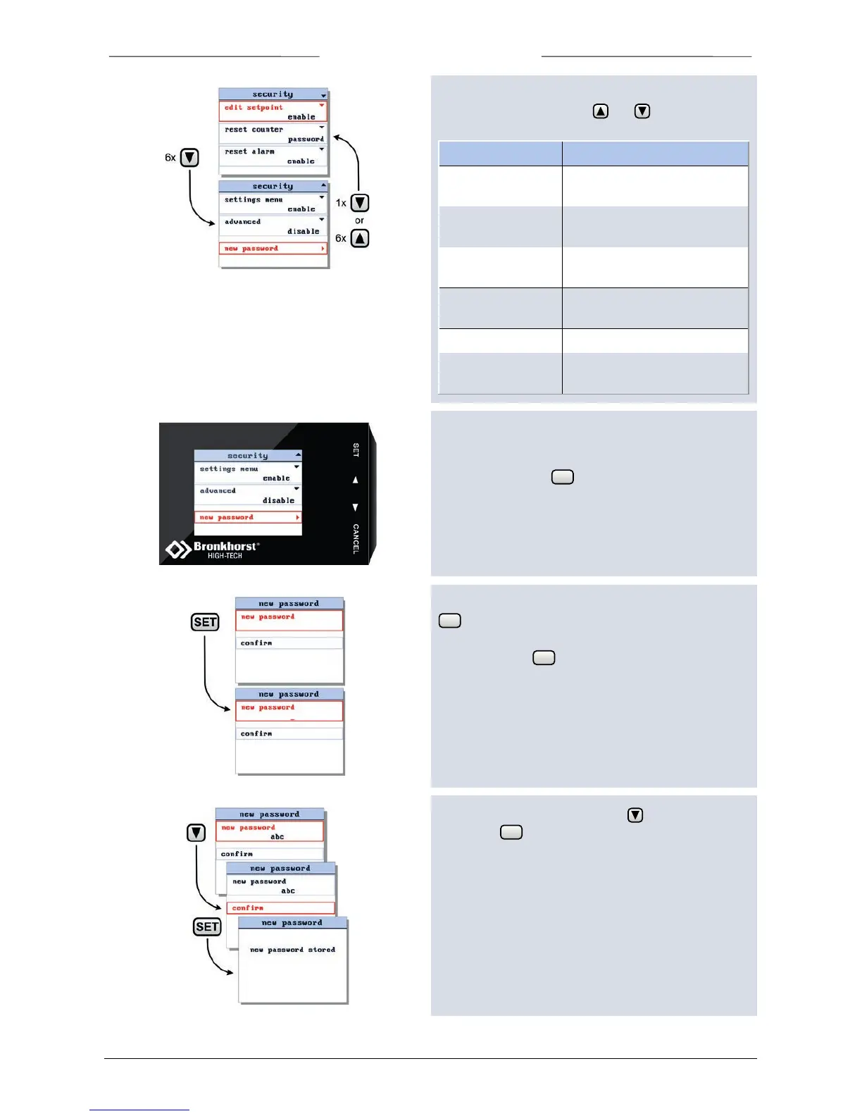 This will open the ‘new password’ input display. Press