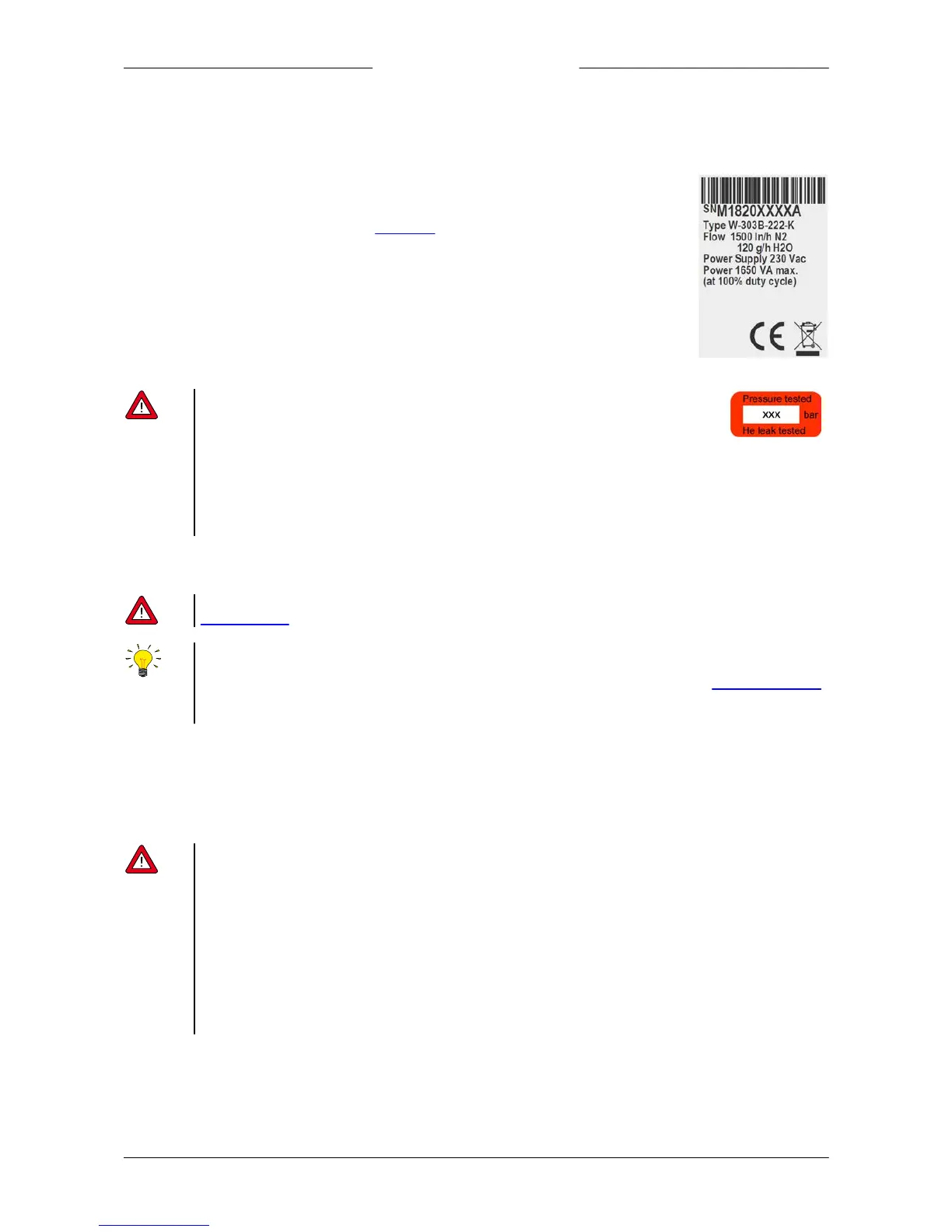 · If the pressure test label is missing or if the specified pressure is insufficient, the instrument must not be used and should