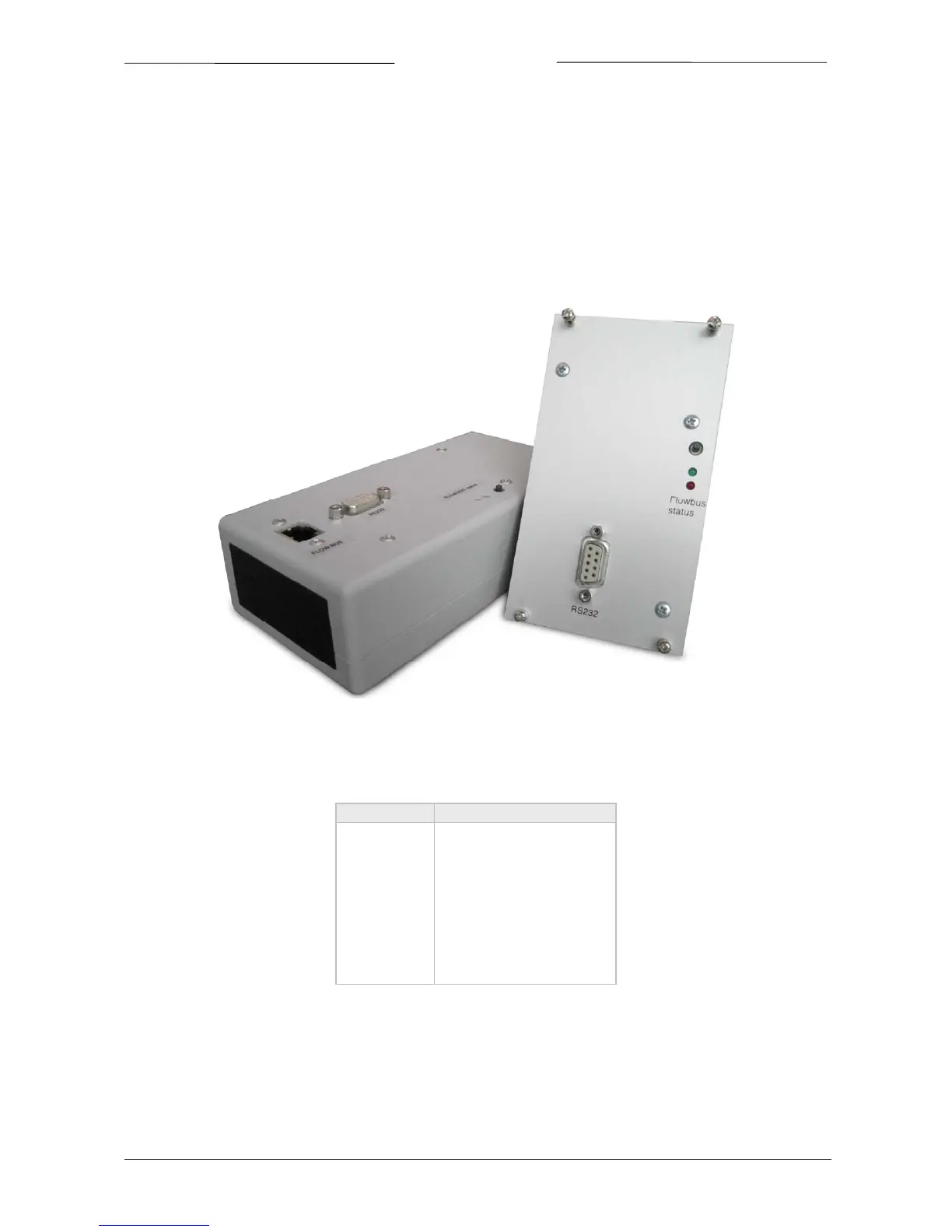 will either be supplied as a separate enclosed unit with a FLOW‐BUS connector and a RS232 connector or as an