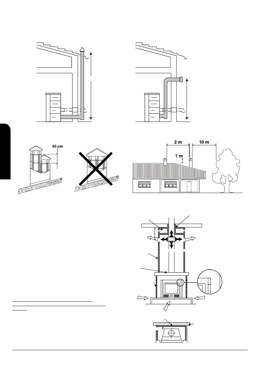 Le tuyau de décharge de fumées doit se fixer hermétiquement à la cheminée et il peut avoir une inclination maximale de 45º, pour éviter les