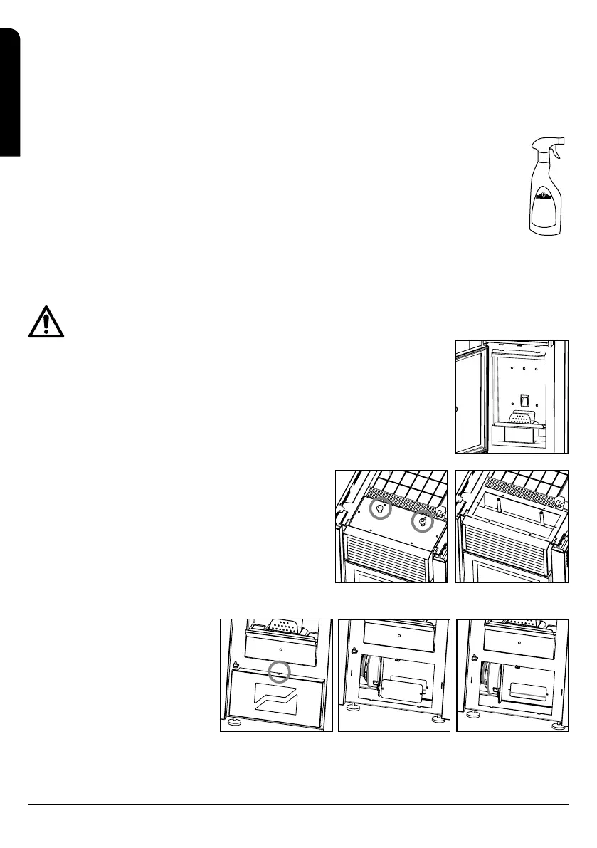 humos, eliminando totalmente la ceniza y demás residuos, cerrar la puerta de la termoestufa. La operación de limpieza del conducto de