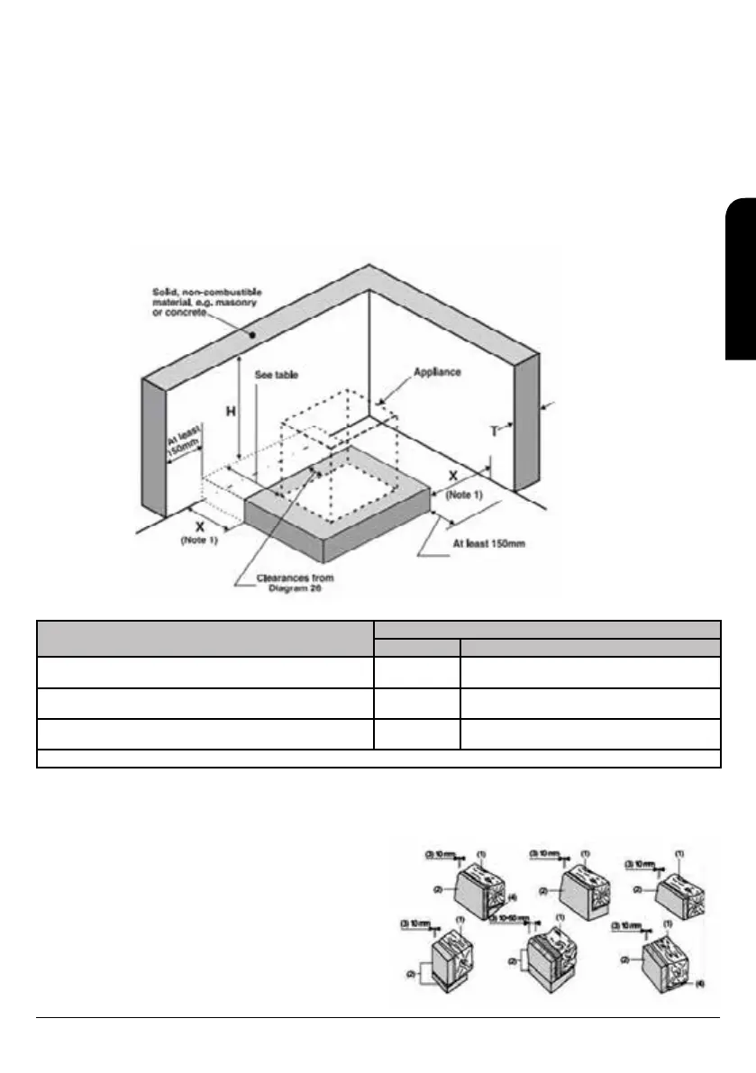 Where the hearth abuts a wall and the appliance is more than 50