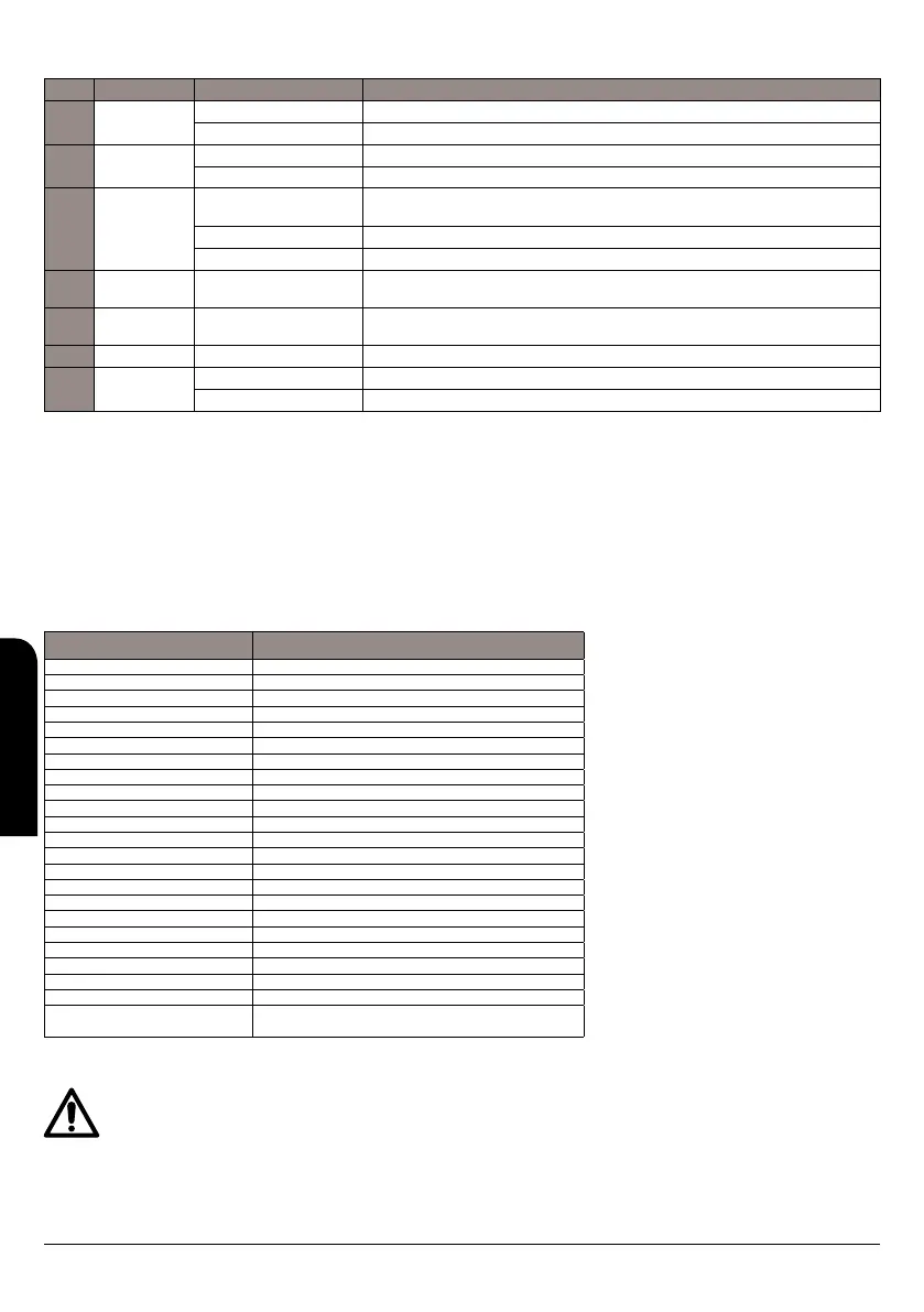 A seguinte tabela descreve brevemente a estrutura do menu do termoaquecedor ou incastrável. Na tabela anexa especificam-se as opções