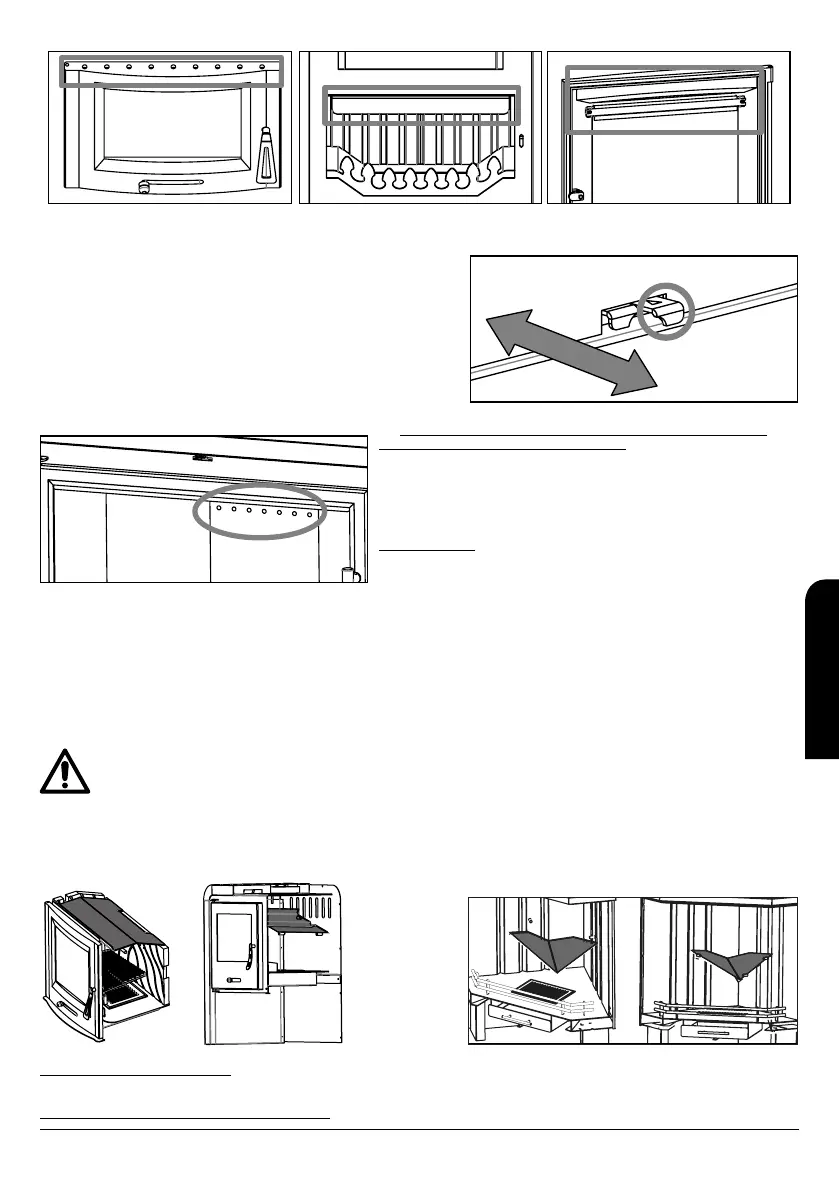 Nos modeos Petra, Sydney e Dover o deflector apoia-se nos suportes laterais que se encontram no interior da câmara de combustão e deve