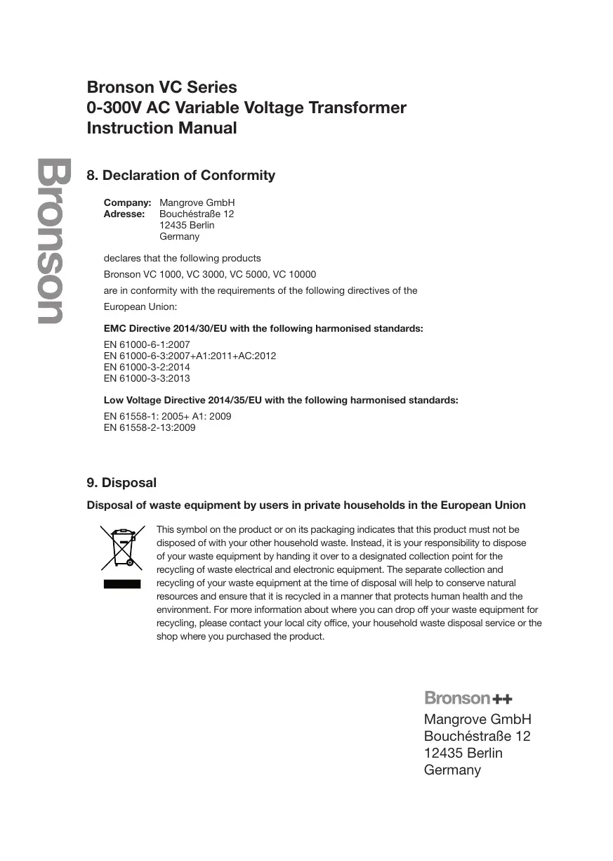 Bronson VC 1000, VC 3000, VC 5000, VC 10000