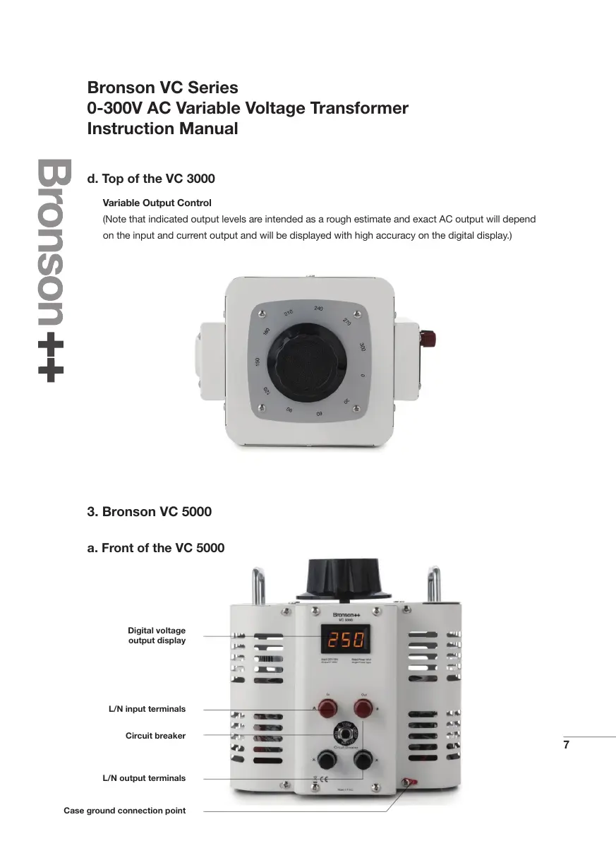 Bronson VC Series - Top of the VC 3000; Bronson VC 5000 Features; Front of the VC 5000