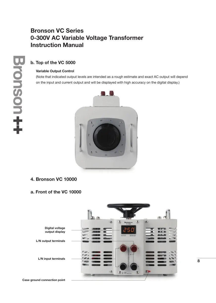 Bronson VC Series - Top of the VC 5000; Bronson VC 10000 Features; Front of the VC 10000