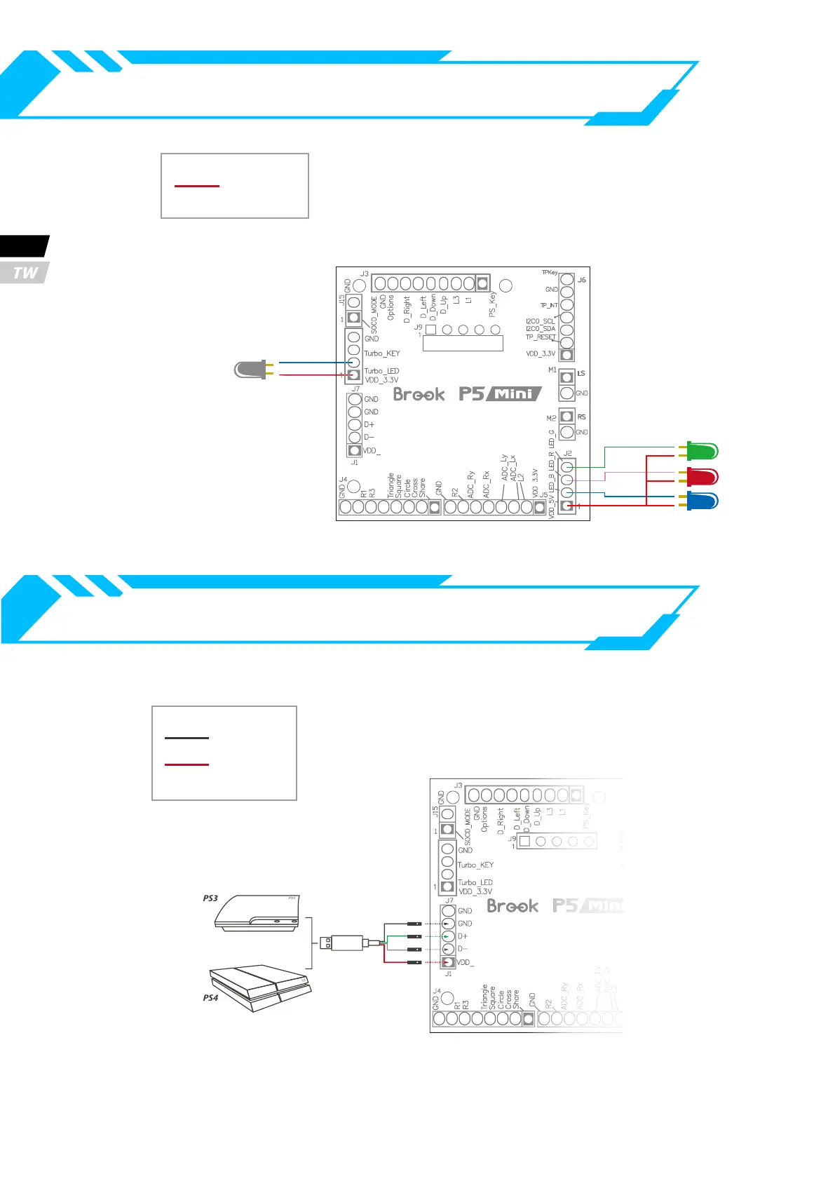 Brook P5 MINI FIGHTING BOARD - How to Connect the Controller LED; How to Connect the USB