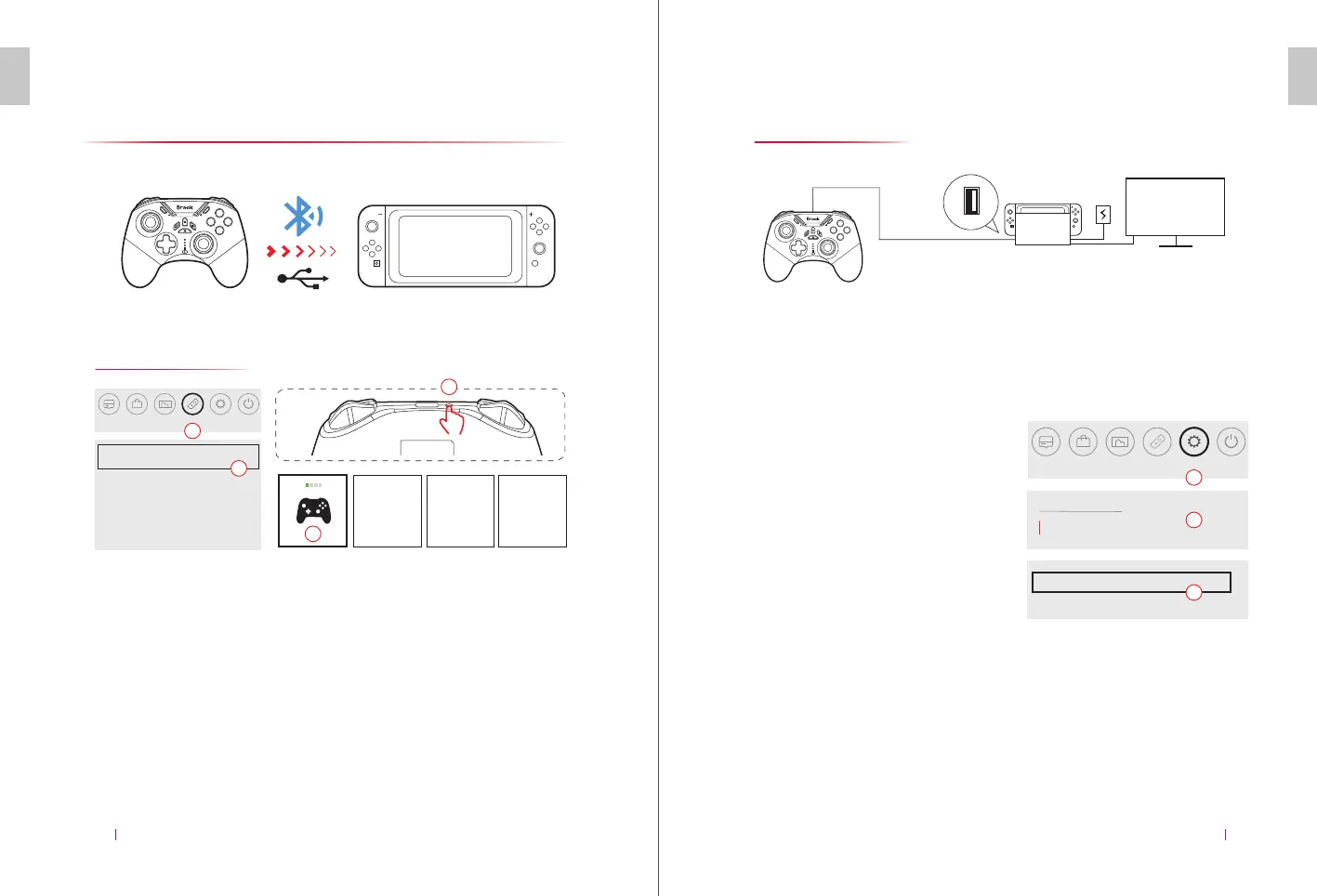 連接成功手把通道燈常亮,RGB當前預設燈光為紅色。