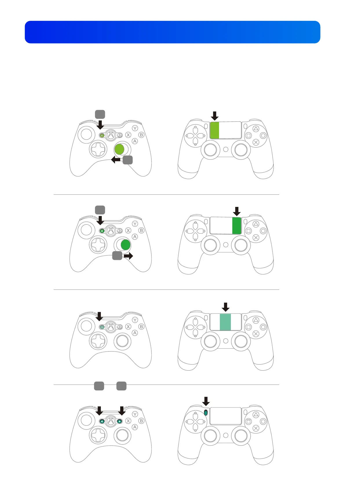 1.Back 버튼과 우측 조이스틱을 함께 작동하면 PS4의 터치패드 버튼과 유사한