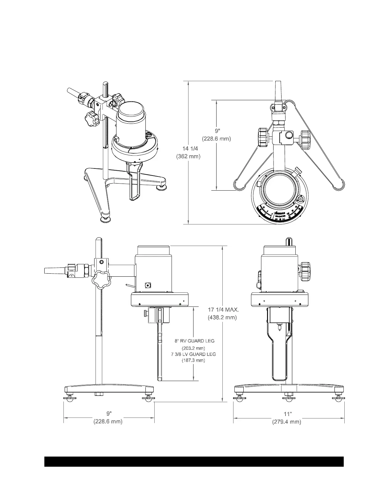 WITH MODEL A-E LAB STAND OVERALL DIMENSIONS