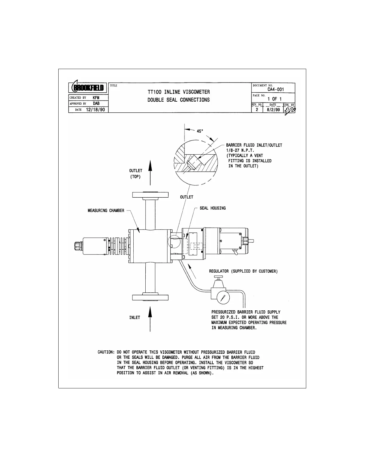 Figure B-10:TT100 In-Line Viscometer Double Mechanical Seal Connections