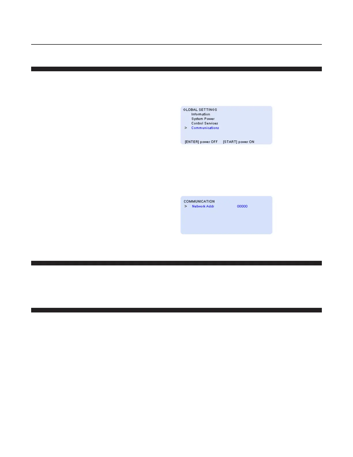 Communications on the Global Settings screen and press the ENTER key.