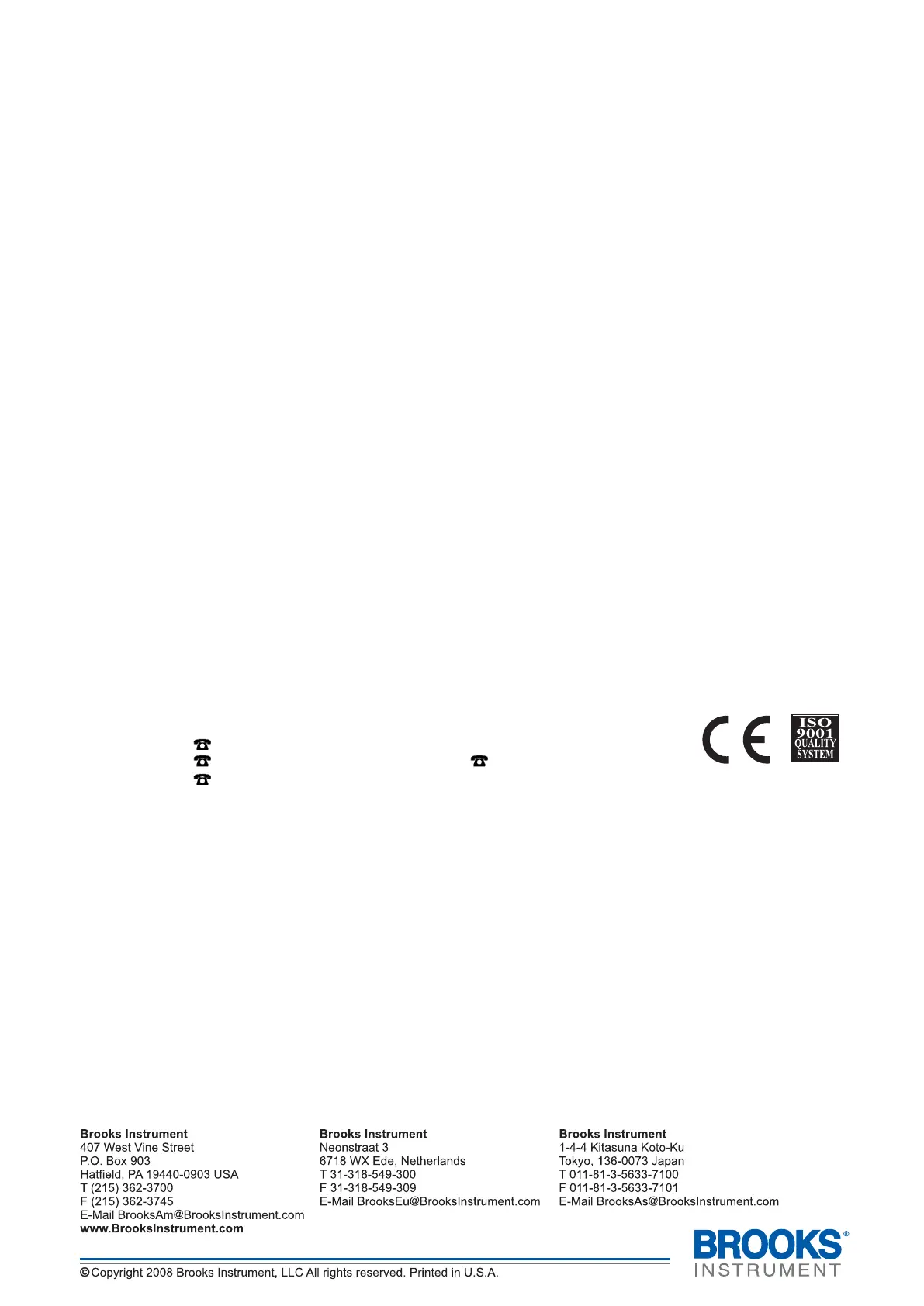 Visit www.BrooksInstrument.com to locate the service location nearest to you.