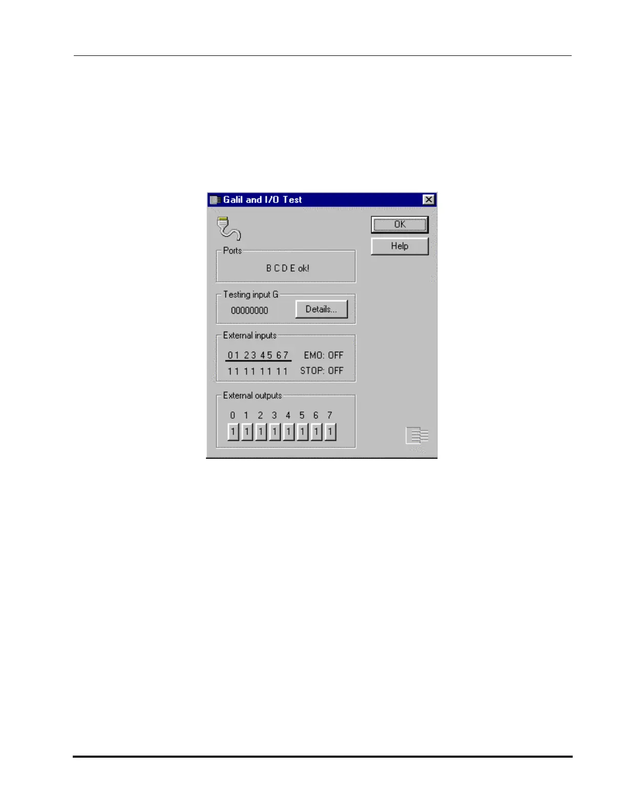 Figure 9-6: Galil and I/O Test Results Box