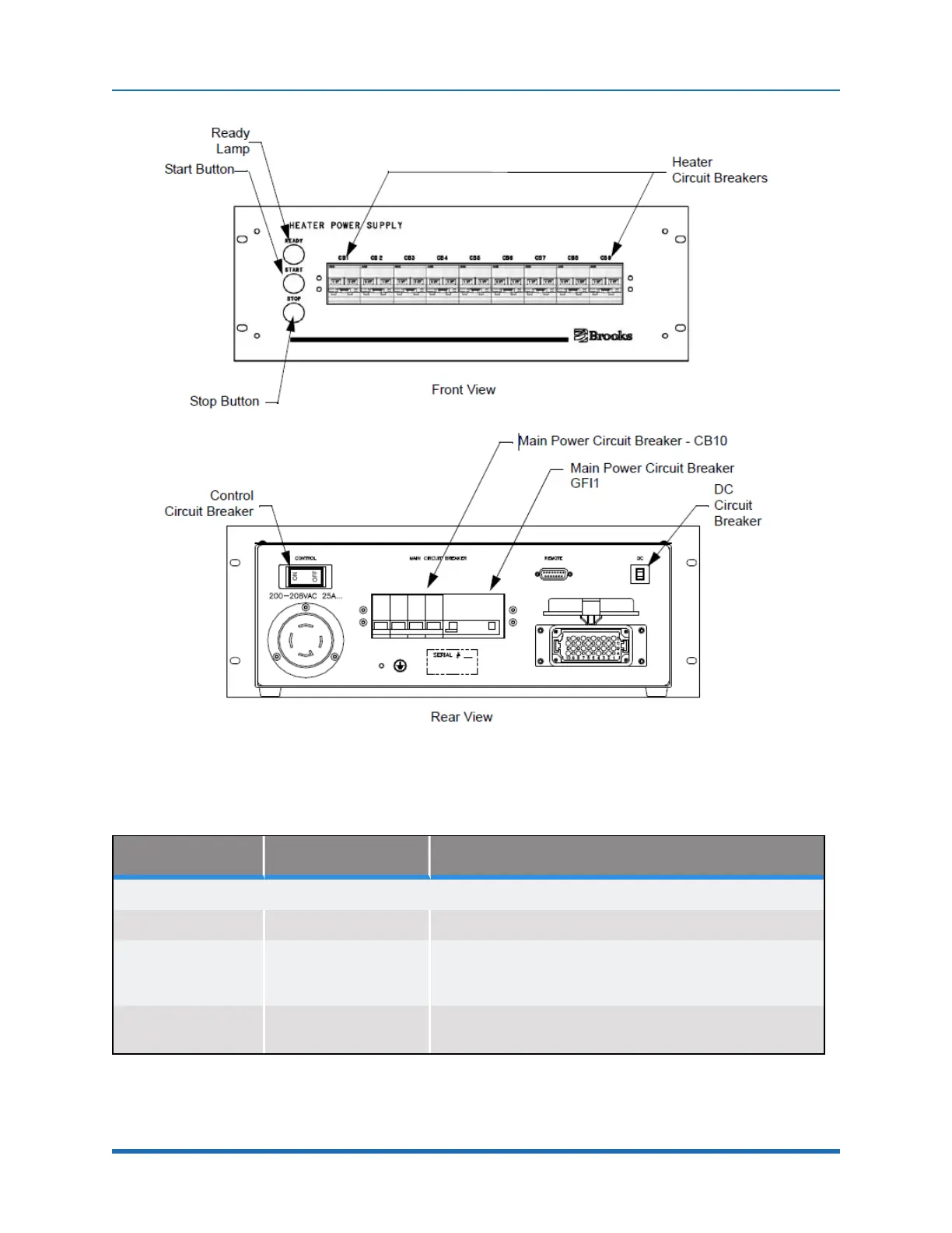 Table 6-2: Heater Power Supply - Controls and Indicators