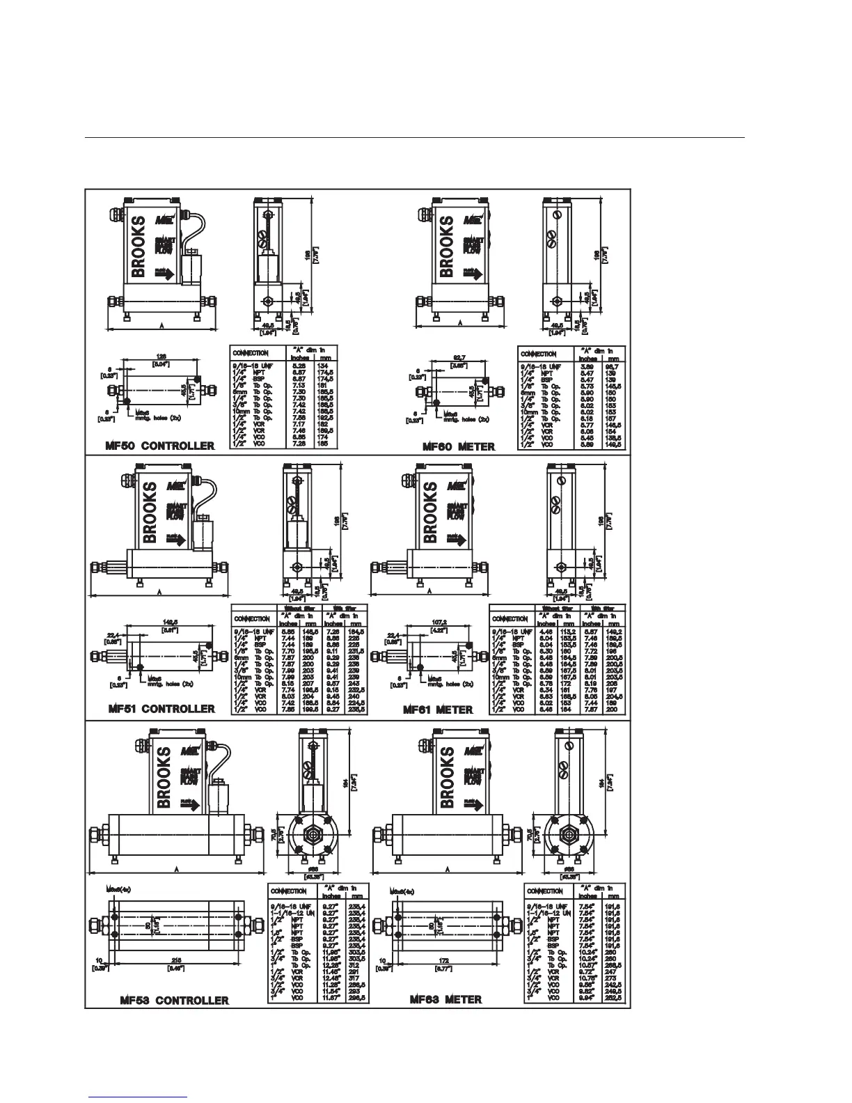 Brooks MFM - Appendix B: Dimensional Drawings; MF50 and MF60 Drawings; MF51 and MF61 Drawings; MF53 and MF63 Drawings