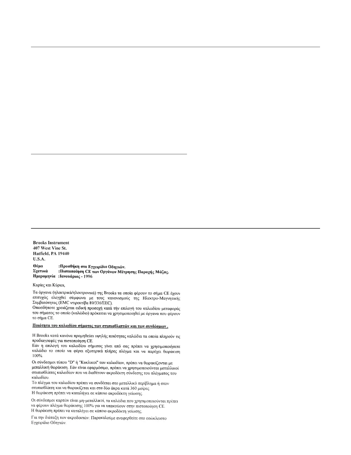 Les équipements Brooks (électriques/électroniques) portant le label CE ont été testés avec succès selon les