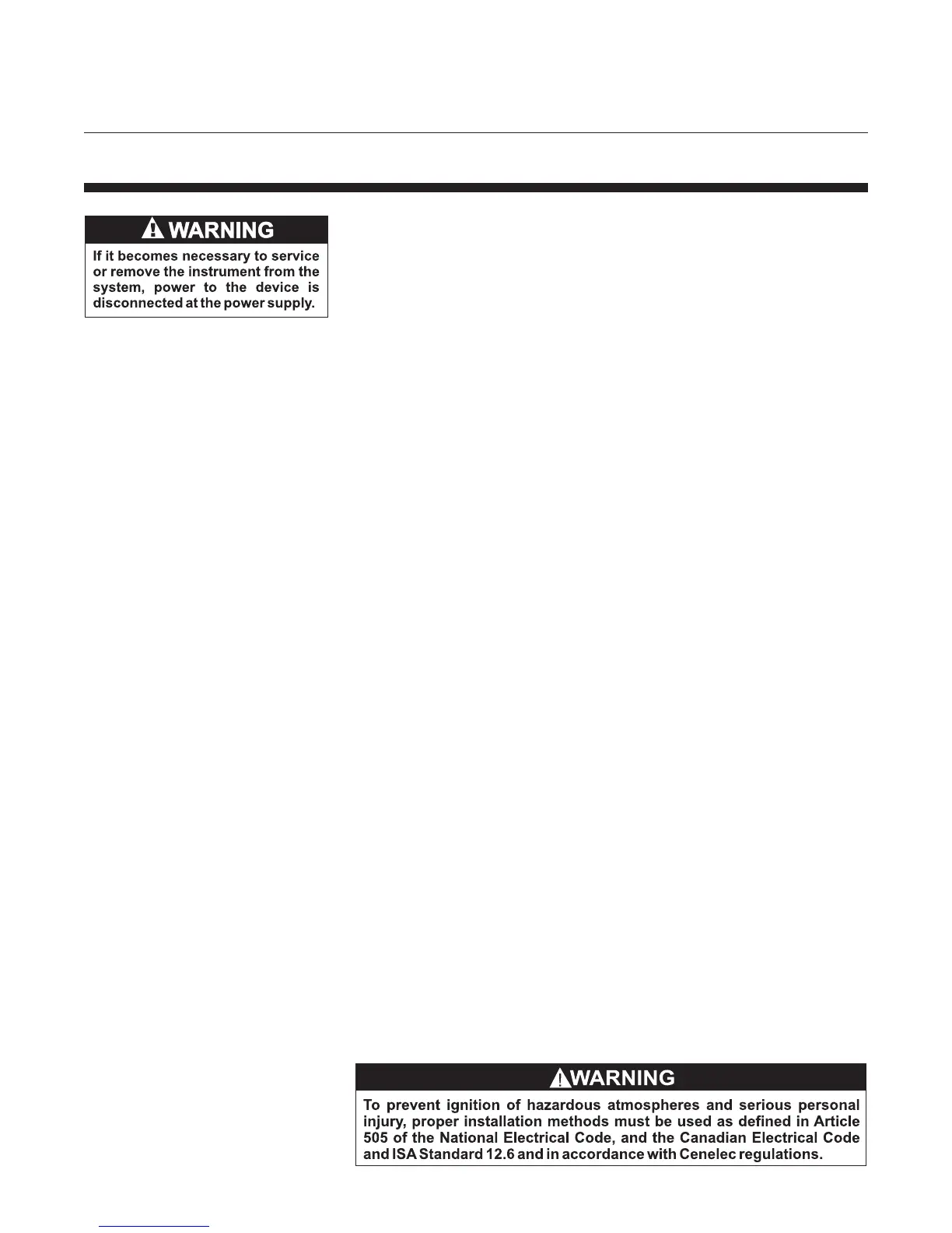 required and explosion proof installation methods must be followed.