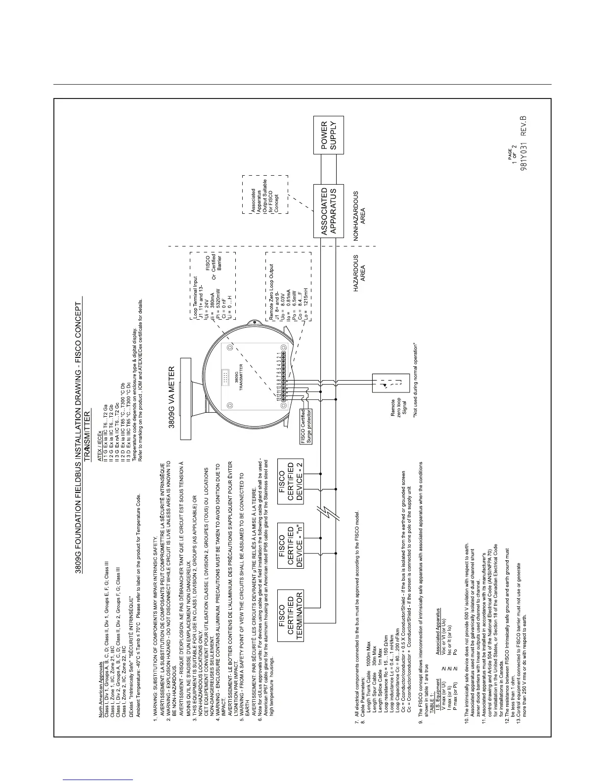 Figure 2-12 Wiring Diagram, Model MT3809, Foundation Fieldbus - FISCO Concept - Transmitter