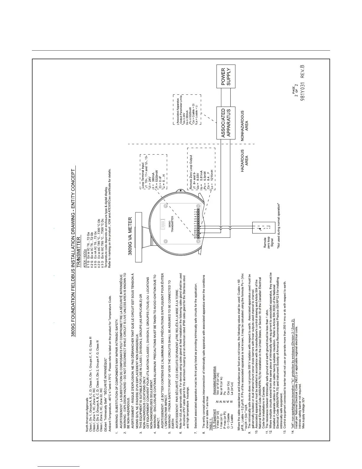 Figure 2-13 Wiring Diagram, Model MT3809, Foundation Fieldbus - Entity Concept - Transmitter