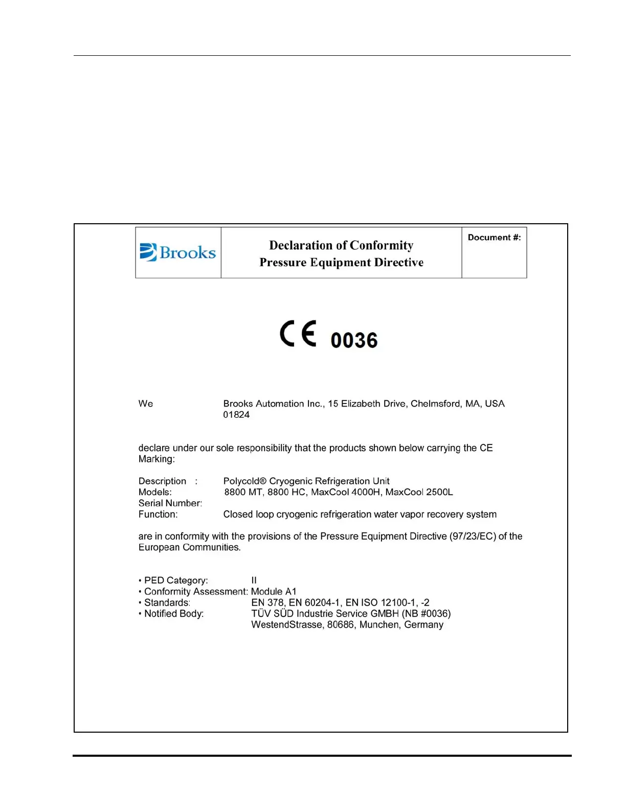 Brooks Polycold MaxCool 2500L - Regulatory Compliance; Declaration of Conformity (DOC)