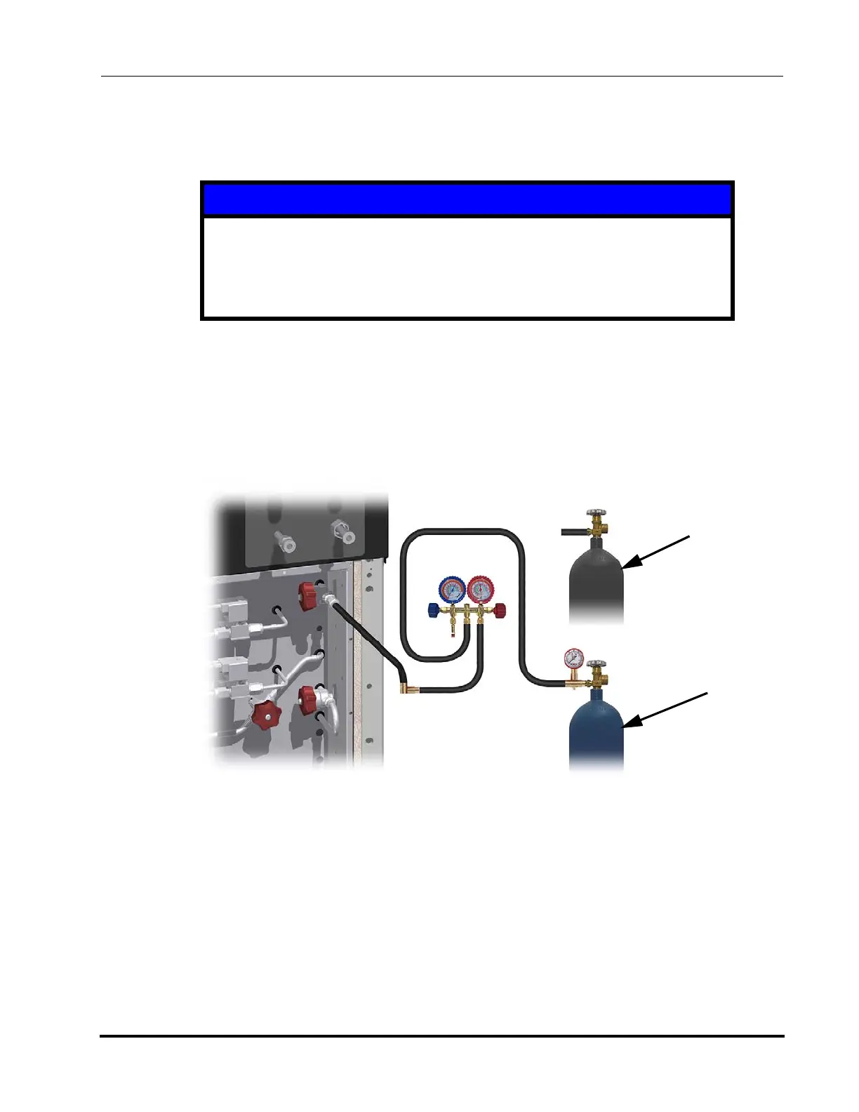 7. Connect the nitrogen cylinder to the center port of the manifold. See Figure 4-21.