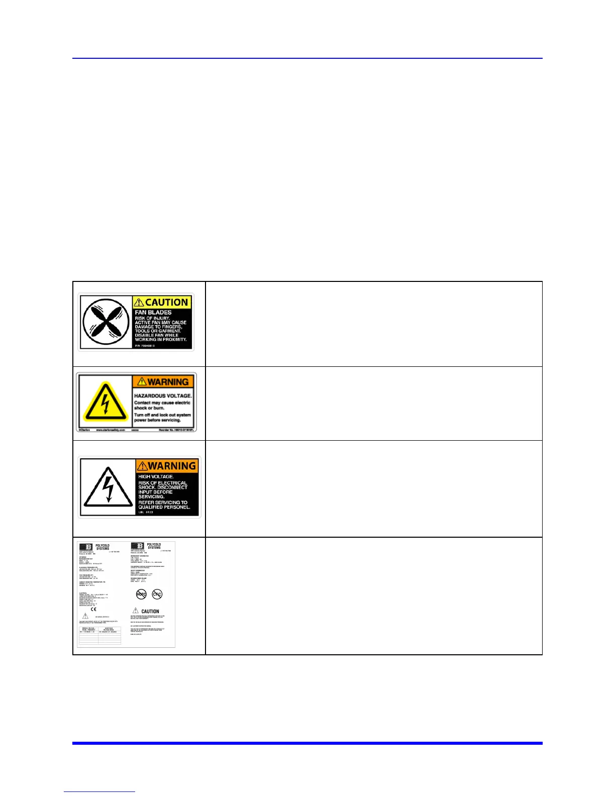 information for operators and service personnel to identify hazards. Some labels inform the user about