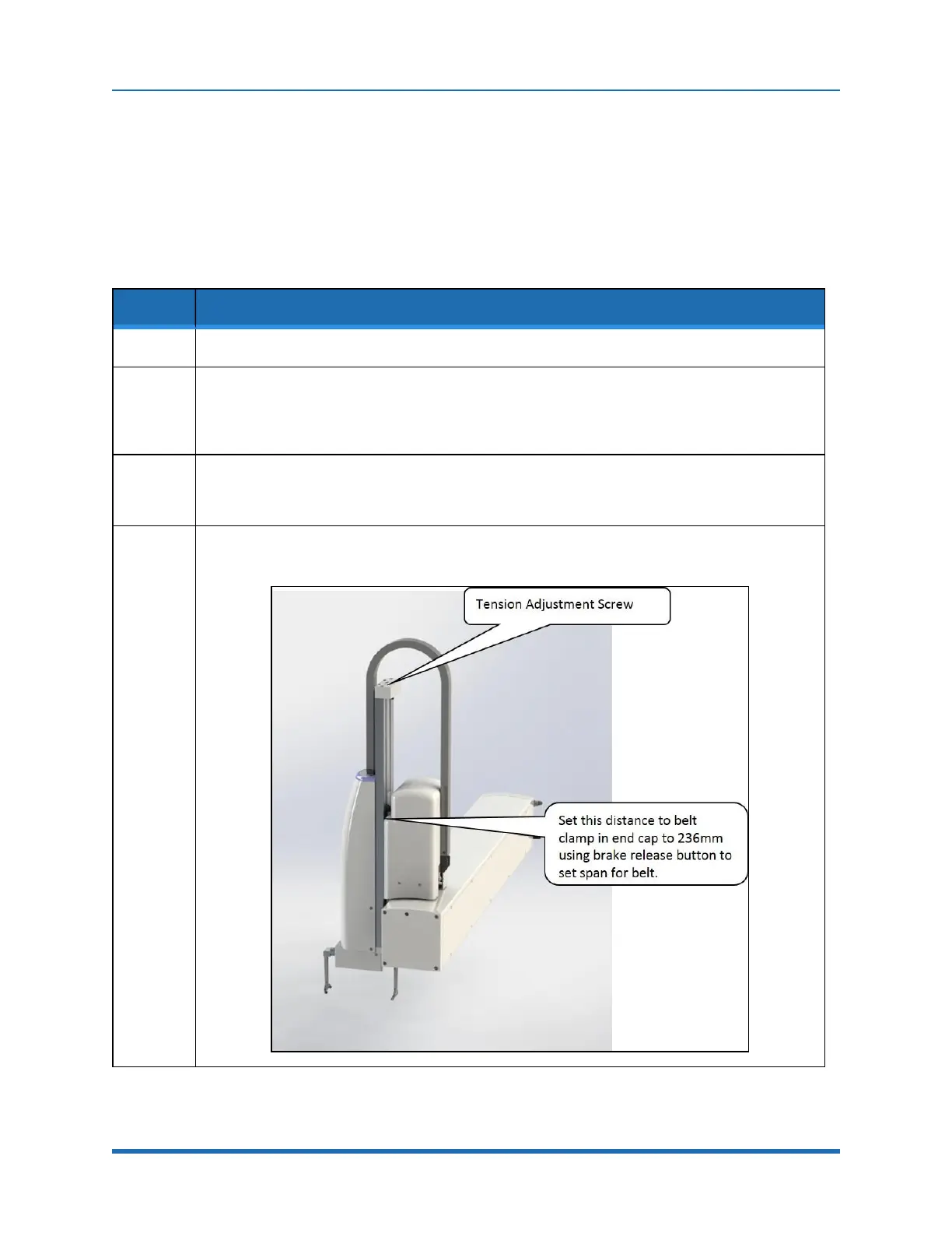 For the 260 mm Z stroke robot move the Z-axis so the distance from the upper belt roller to the top