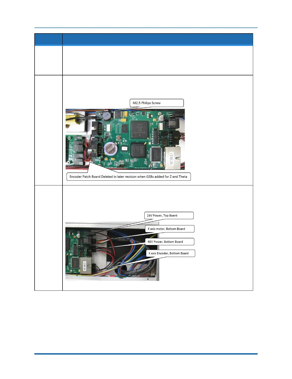 Remove the amplifier board standoffs which attach the amplifier board to the X-axis controller