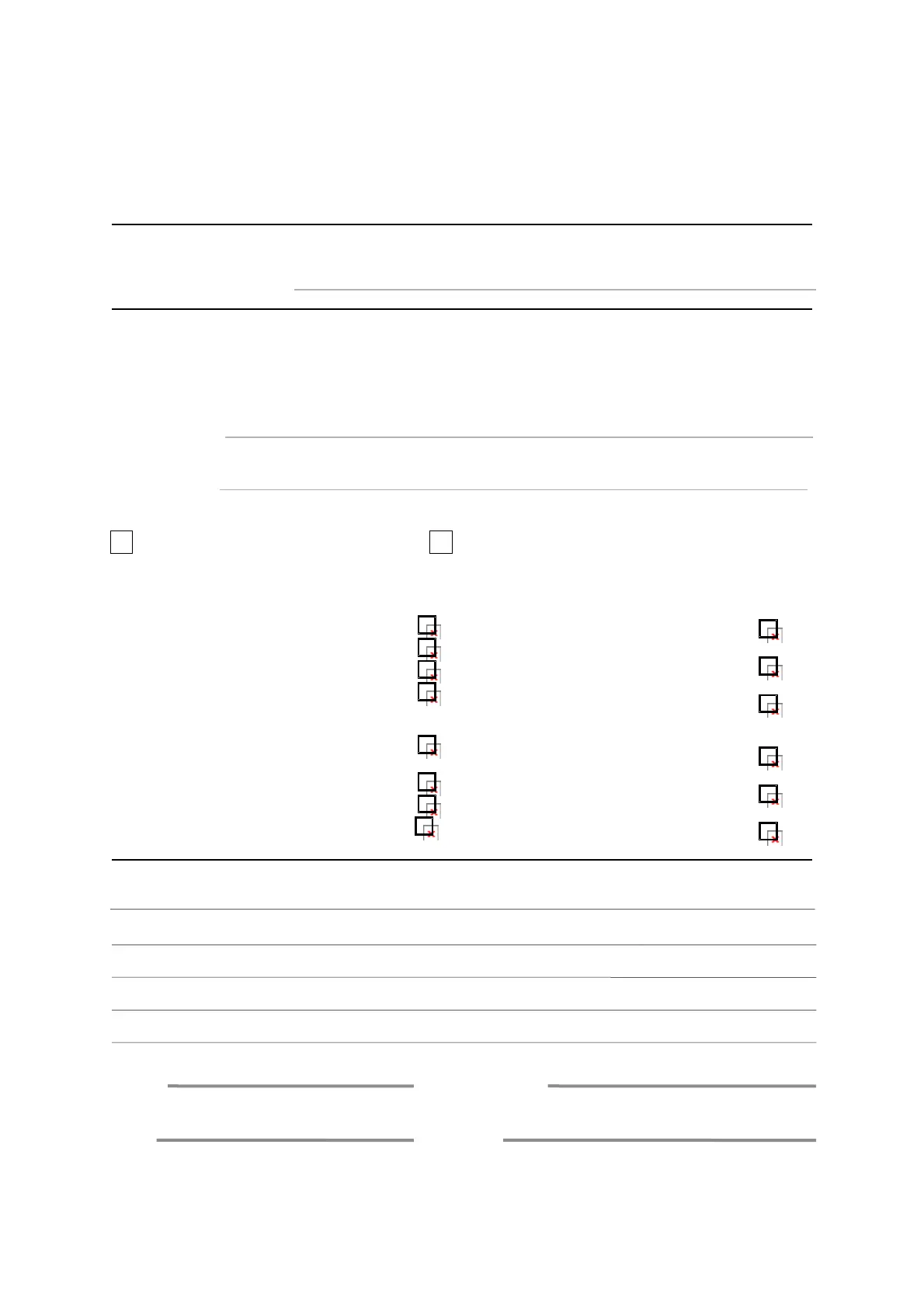 Place a tick in box where item is satisfactory Place a cross in box where item is unsatisfactory
