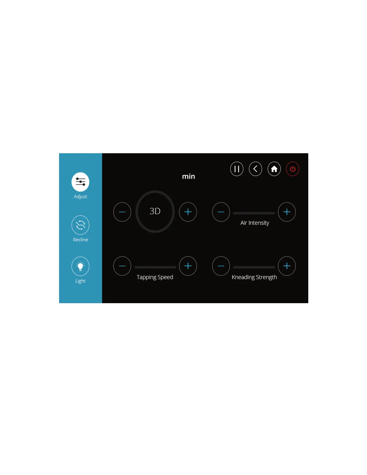 In this interface, you can adjust massage 3D strength, tapping speed, kneading strength and air intensity