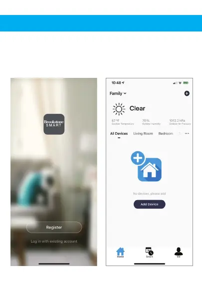 Brookstone BKSPB-BF - App Setup: Registration and Login; Launching the Smart App; Creating or Logging into Account