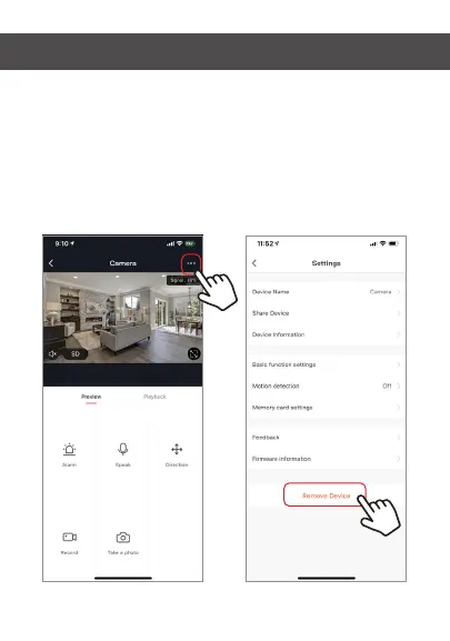 Brookstone BKWIFICAM - Remove a Device; Device Removal Procedure from App