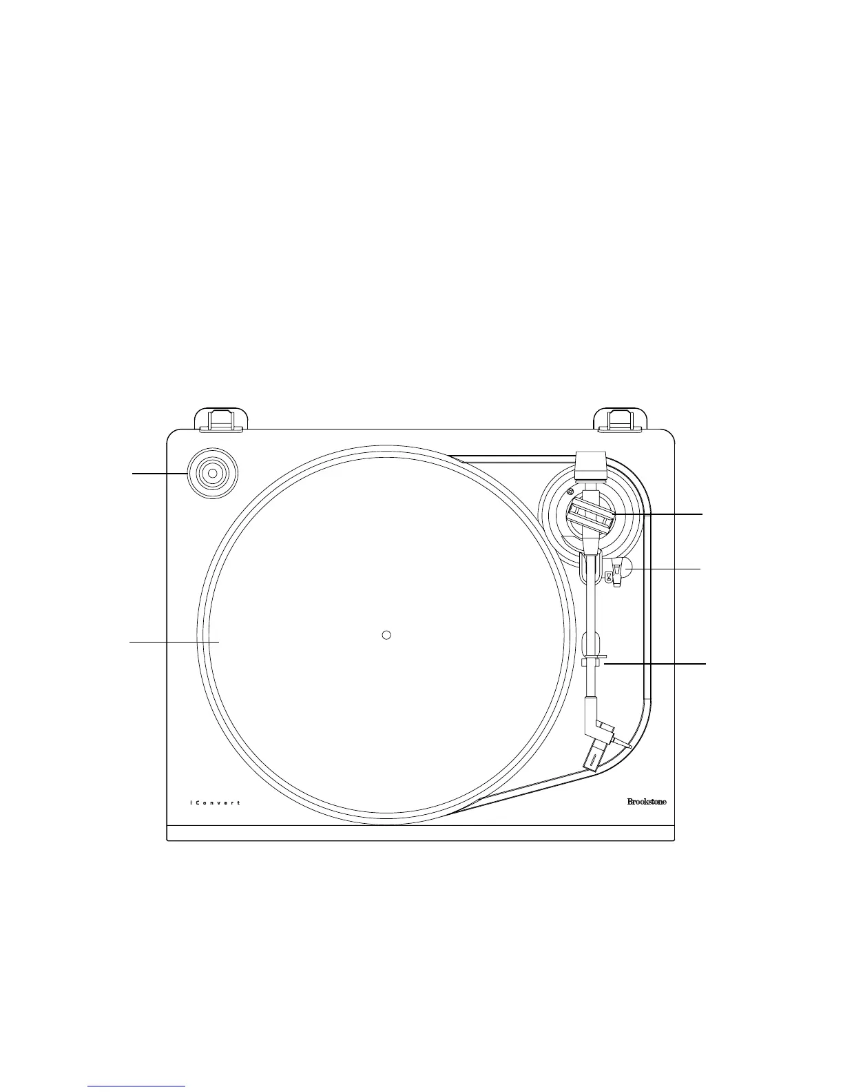 Brookstone iConvert USB Turntable - Location of Controls; Turntable Top Controls