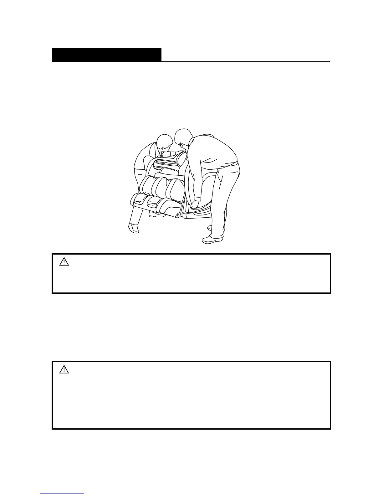 • Do not sit down on the chair with the leg rest raised. Any sudden heavy weight