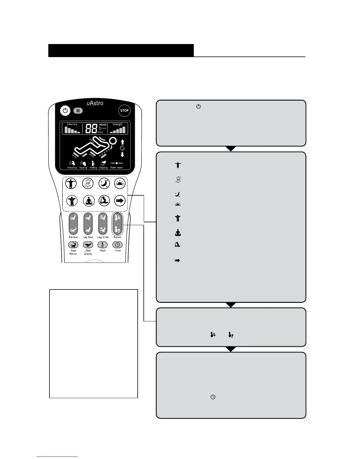 The massage program begins when the Back